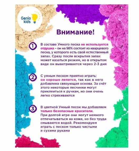 Отзывы на Умный песок Genio Kids "5 в 1" 750 г, 5 цветов, формочек, стек (SSR06)