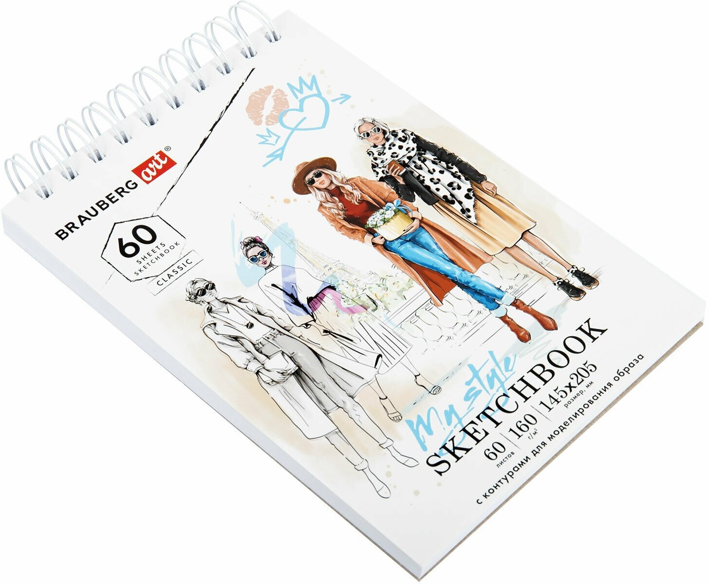 Скетчбук, С шаблонами фигур, бумага 160 г/м2, 145х205 мм, 60 л., гребень, подложка, BRAUBERG ART, 115073 информация: