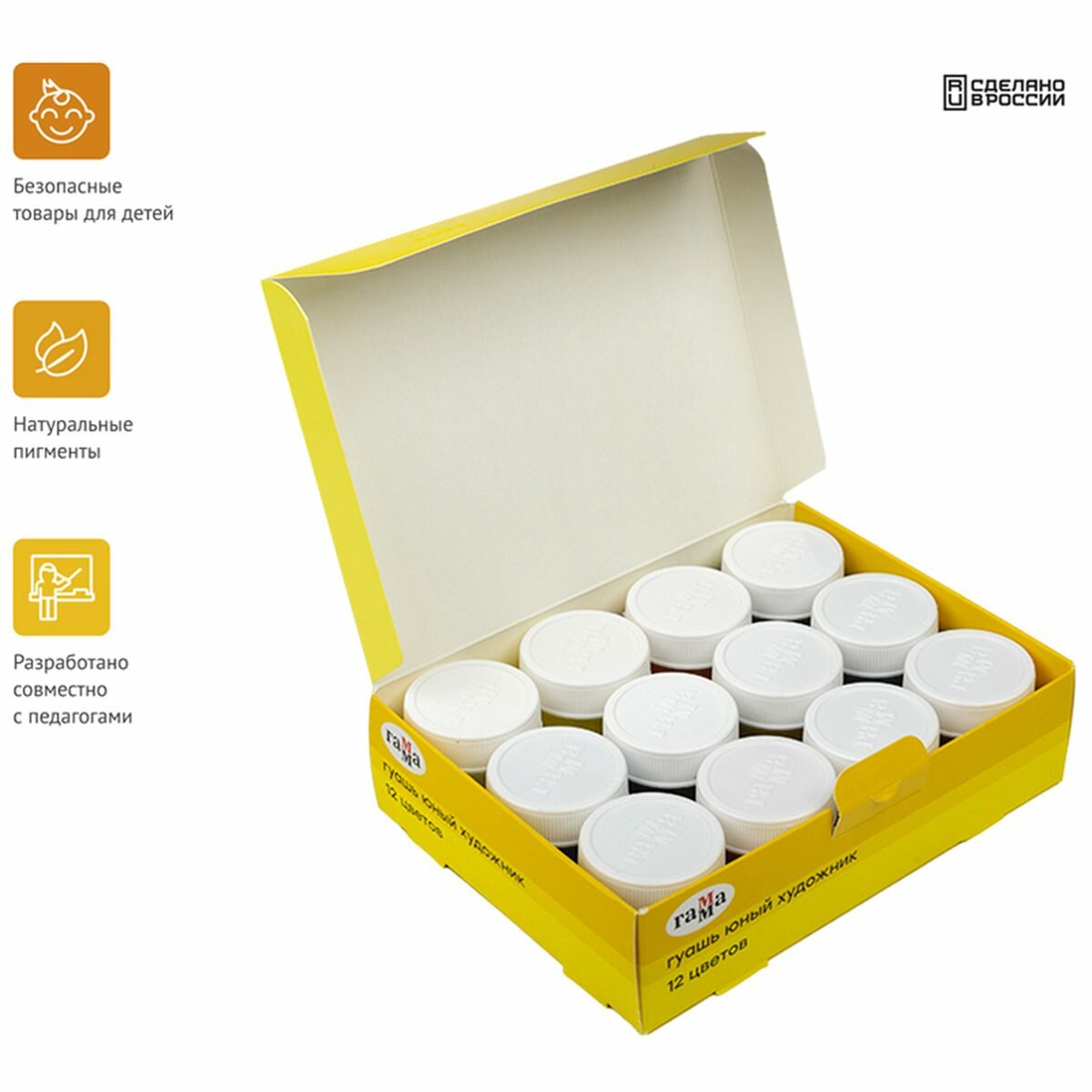 Гуашь 12 цветов Гамма "Юный художник" (по 17.5мл) картон (221008), 8 уп. информация:
