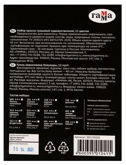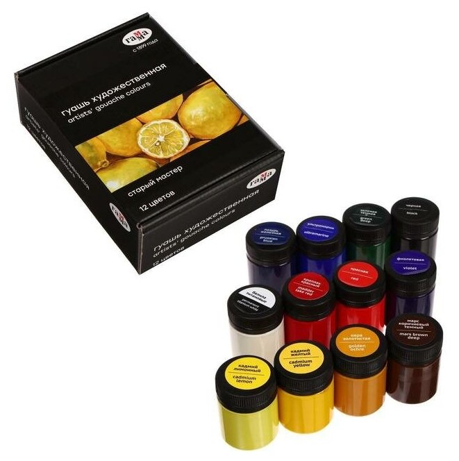 Гуашь художественная Гамма "Старый мастер", 12 цветов, 40мл/банка информация: