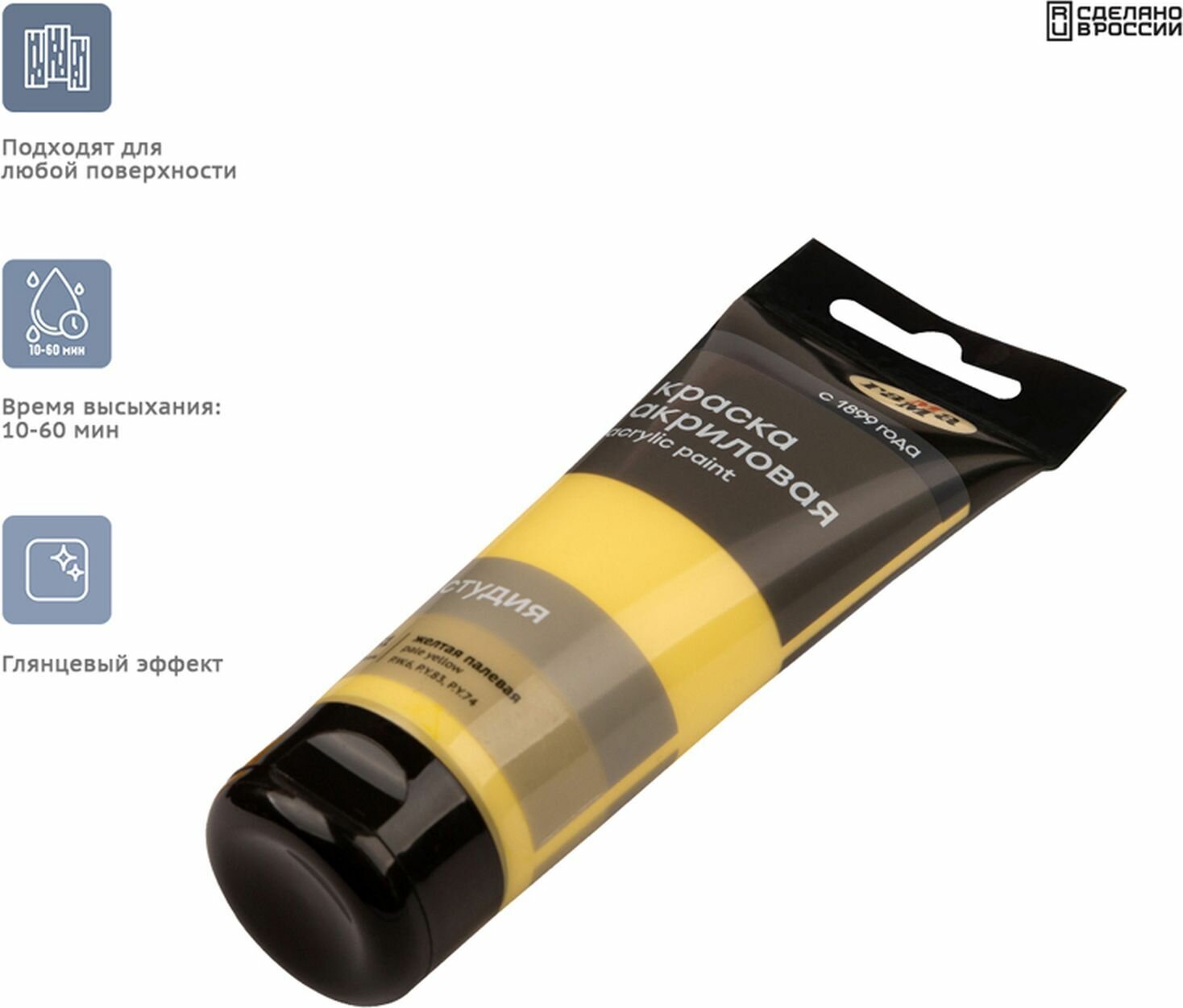 Краска акриловая художественная Гамма "Студия", 75 мл, пластиковая туба, желтая палевая (280220151) информация: