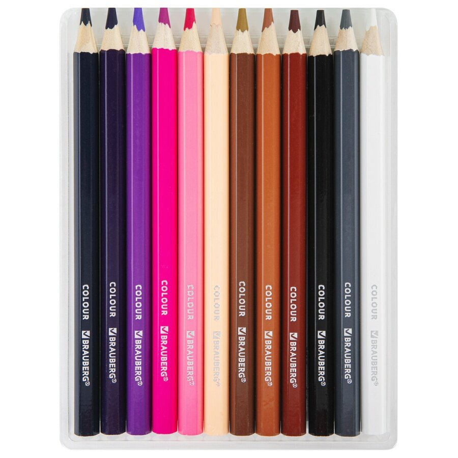 Карандаши цветные пластиковые BRAUBERG PREMIUM, 12 цветов, шестигранные, грифель мягкий 3 мм, 181666, 1 шт