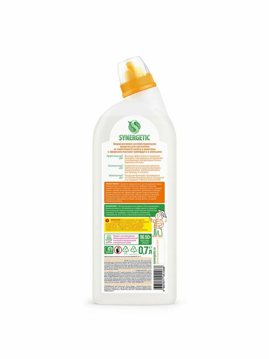 SYNERGETIC антибактериальный гель 0.7 л для сантехники Грейпфрут и апельсин биоразлагаемый информация: