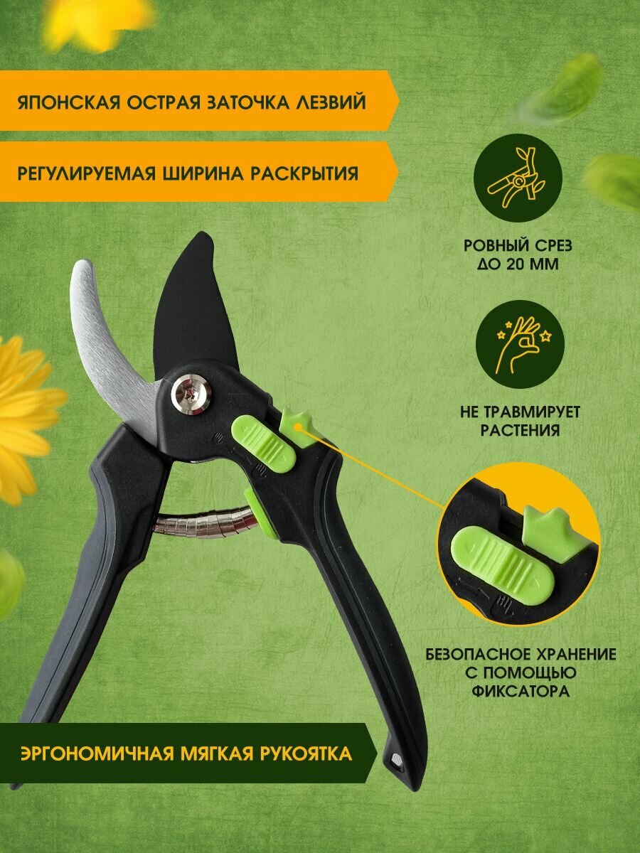 Секатор садовый профессиональный срез 20 мм / универсальный / для дачи и сада информация: