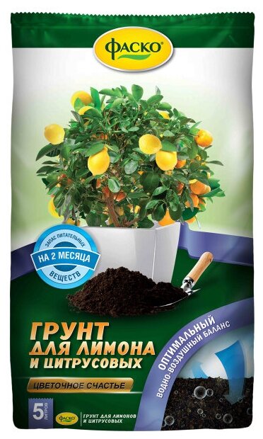 Торфогрунт Фаско Цветочное счастье для лимона и цитрусовых 5 л информация:
