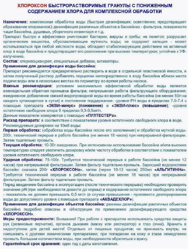 Гранулы для бассейна Хлороксон, дезинфекция 4кг