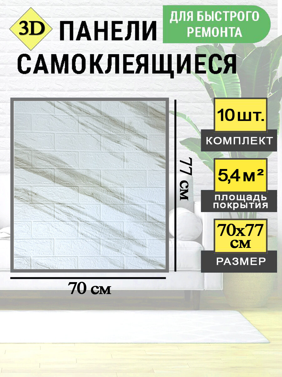 Стеновые самоклеящиеся панели для стен 3D 70*77 "Белый кирпич" 20 шт 3 520 ₽