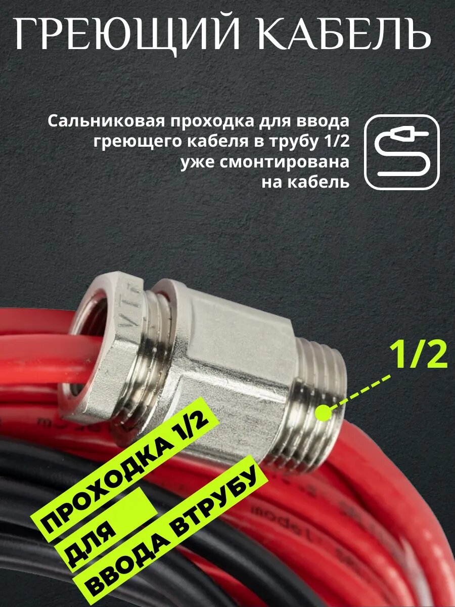 Греющий кабель обогрев люкс Греющий саморегулирующийся кабель в трубу 6 метров Обогрев Люкс с сальником