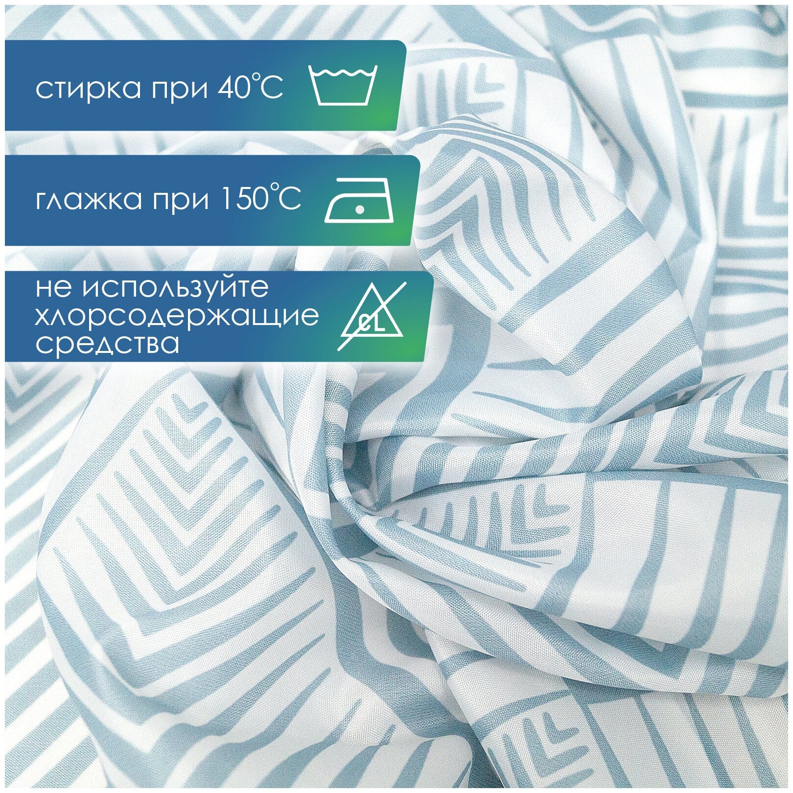 Штора для ванной комнаты VILINA тканевая с рисунком водоотталкивающая с кольцами 180х180см занавес в душевую Голубые зигзаги