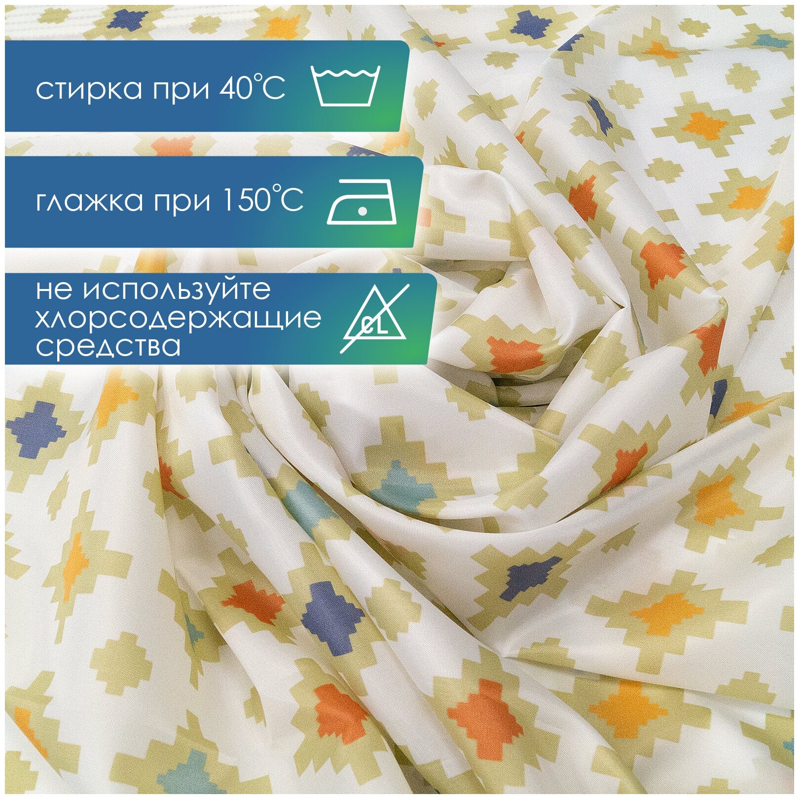 Штора для ванной комнаты VILINA тканевая с рисунком водоотталкивающая с кольцами 180х180см занавес в душевую Треугольный орнамент