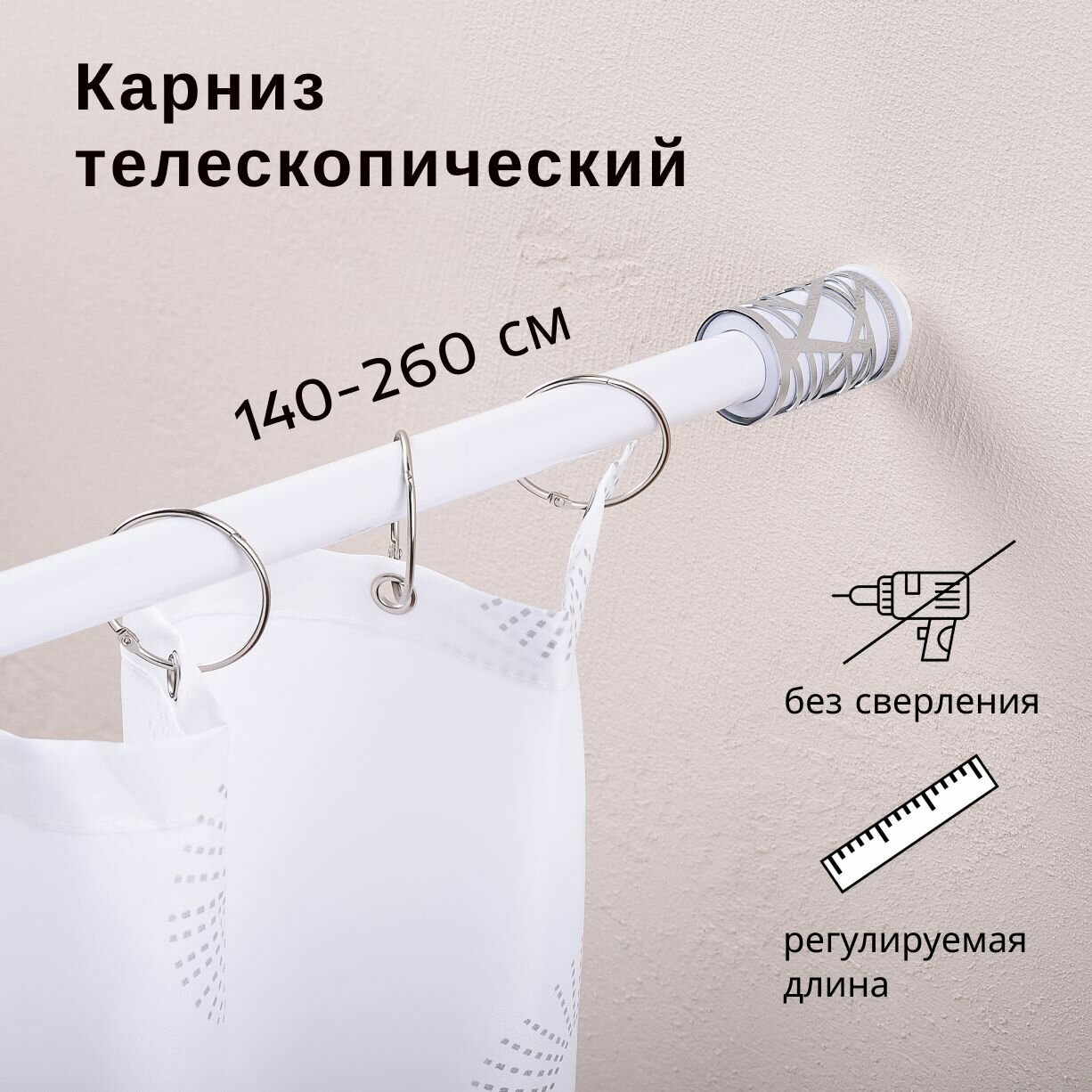 Карниз для ванной 140-260 см телескопический прямой сталь белый информация: