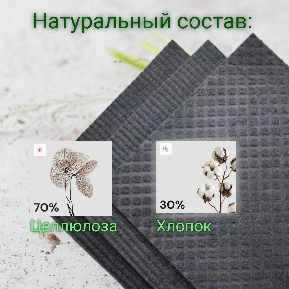 Отзывы на Салфетки для уборки, губчатые из целлюлозы, темно-серые, размер 17*19, 3 шт. Состав: целлюлоза 70%, хлопок 30%