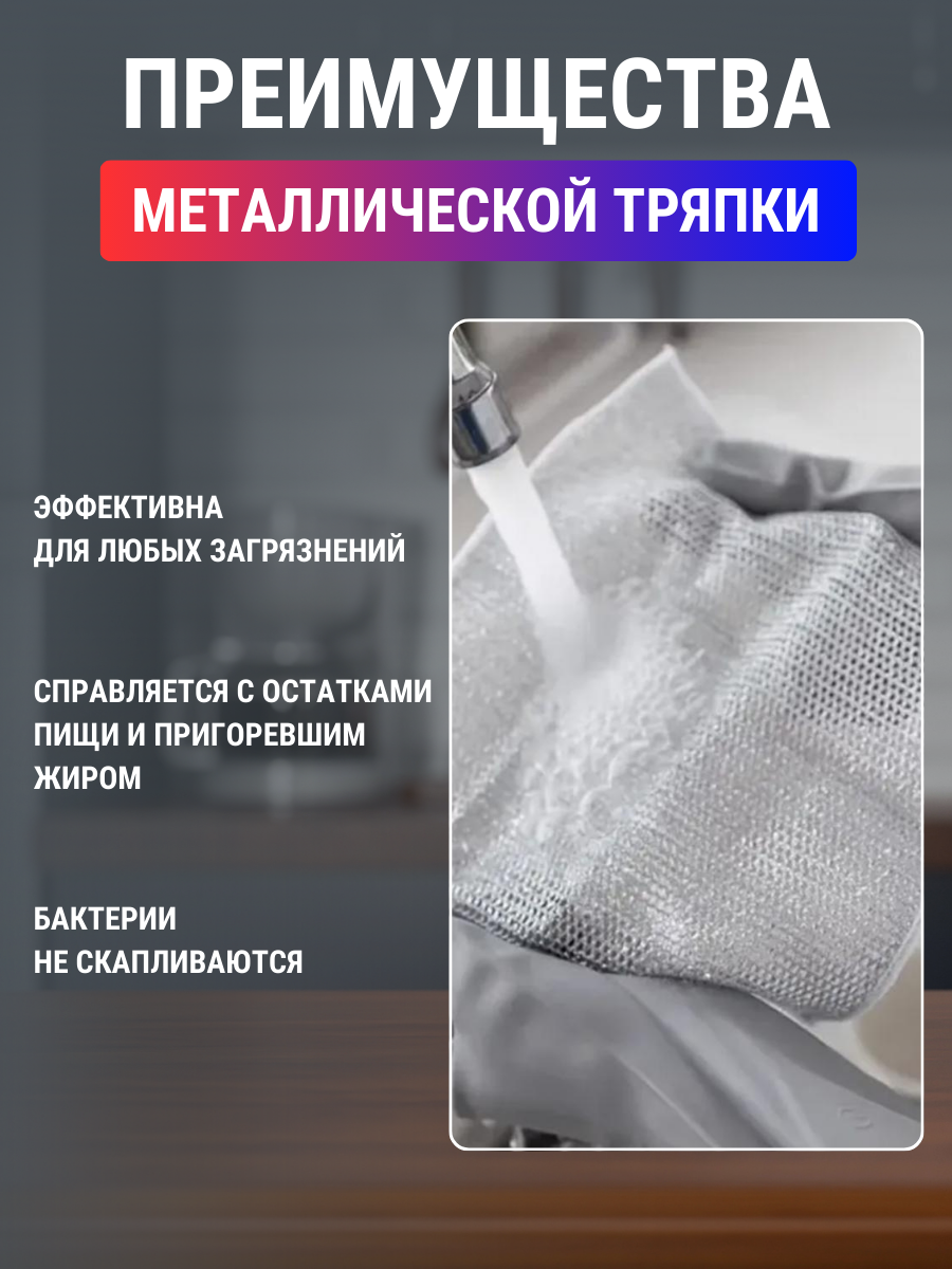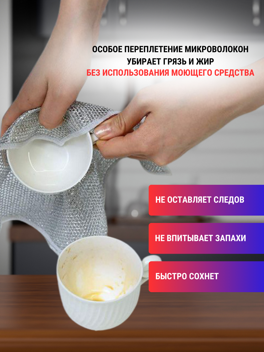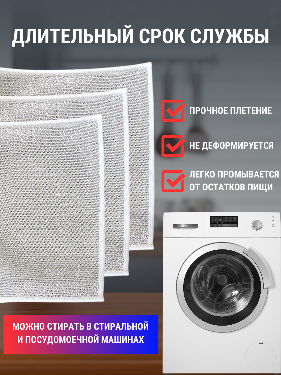 Отзывы на Тряпки металлизированные для мытья посуды двухслойные, 5 штук 20х20 см