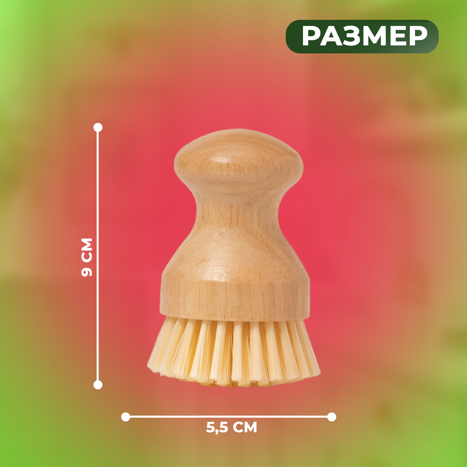 Щётка для мытья посуды и чистки кухонной утвари с ручкой Доляна "Лотос", круглая, деревянная информация: