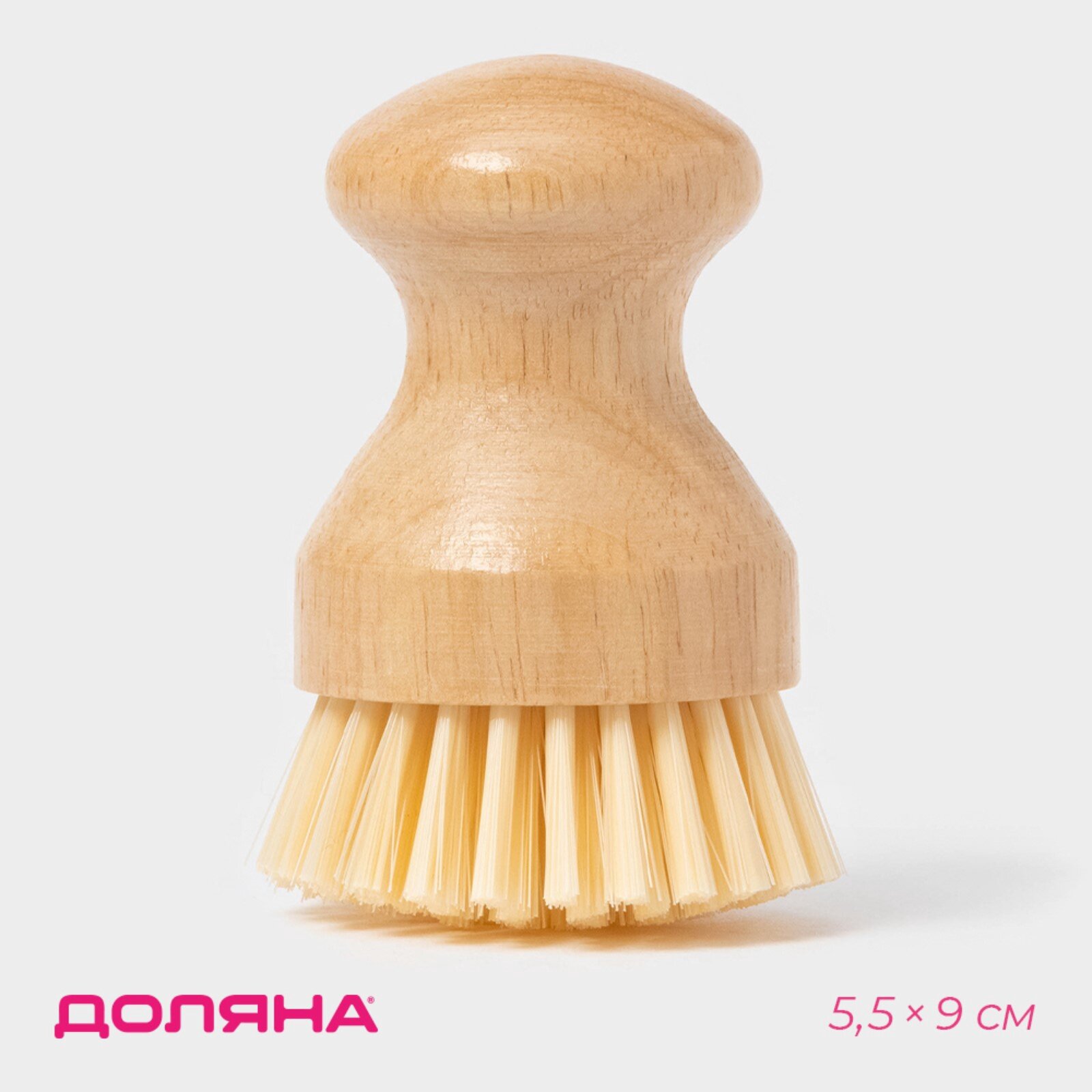 10 цен на Щётка для мытья посуды и чистки кухонной утвари с ручкой Доляна "Лотос", круглая, деревянная