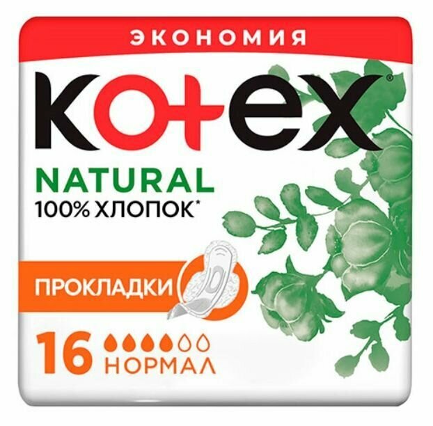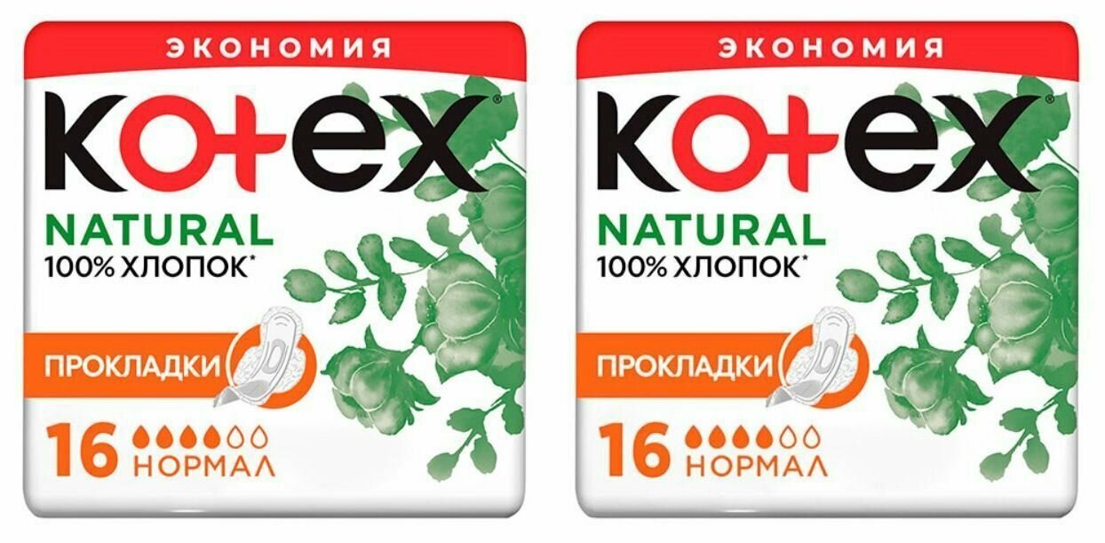 Kotex Прокладки гигиенические Natural Normal, 16 шт, 2 уп информация: