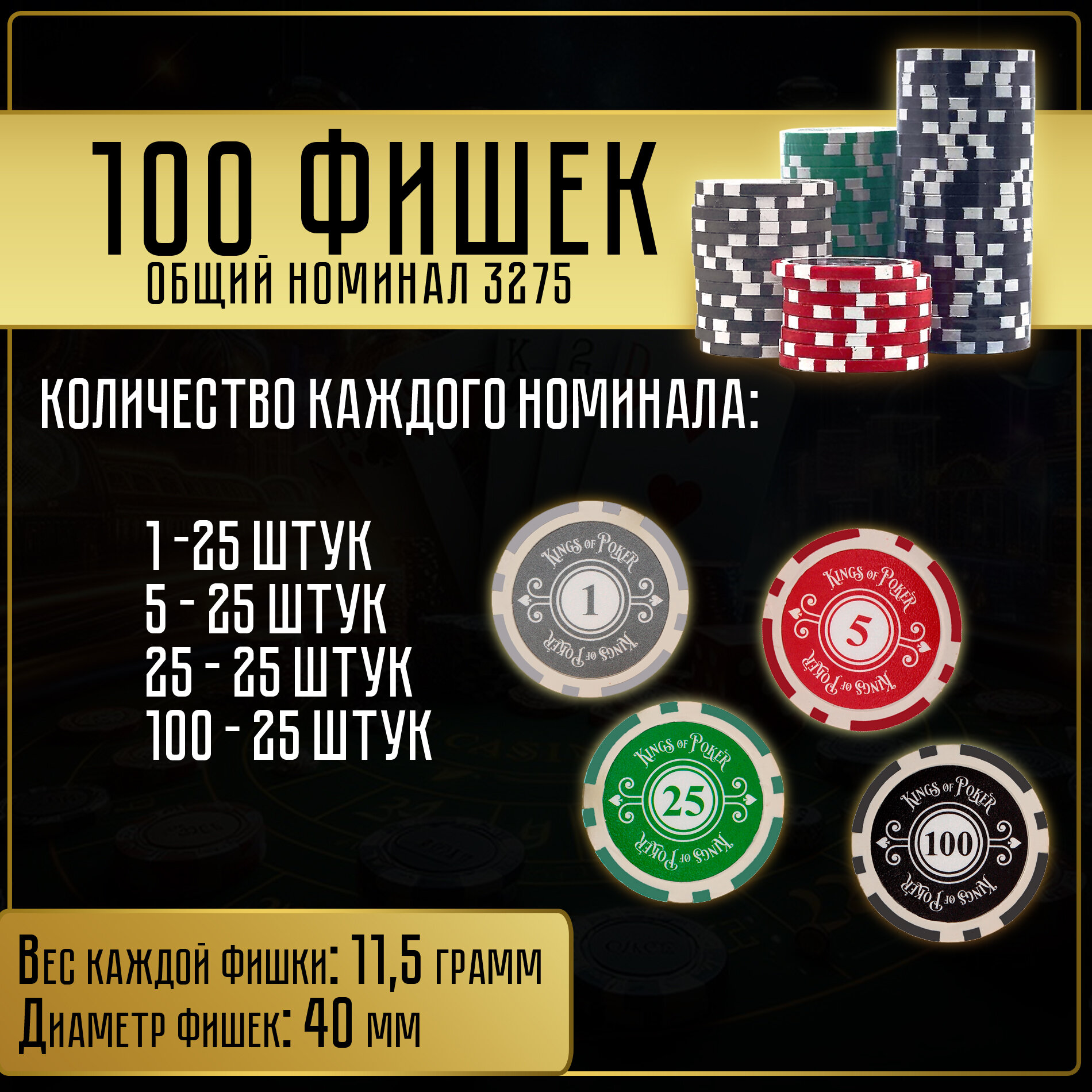 Фабрика Покера: Набор из 100 фишек для покера с номиналом в кейсе информация: