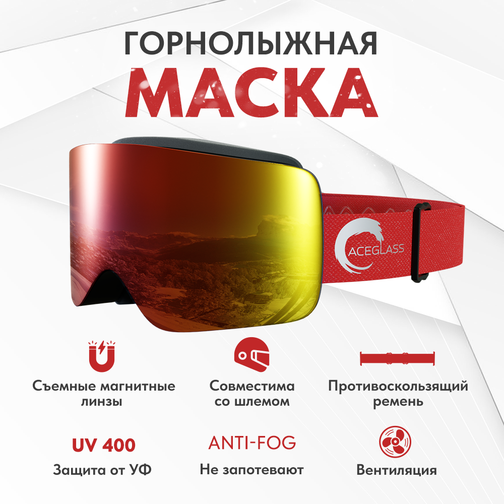 10 цен на Очки горнолыжные, маска сноубордическая красная ISKIDO