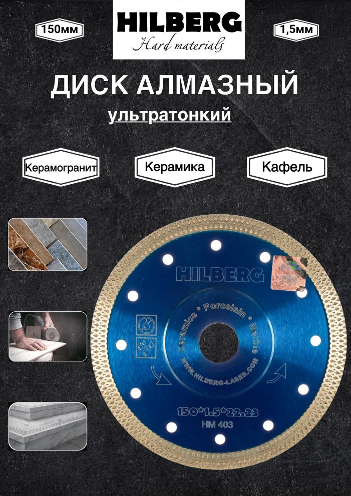 Диск алмазный по керамограниту 150*1.5*22.23 Hilberg HM403