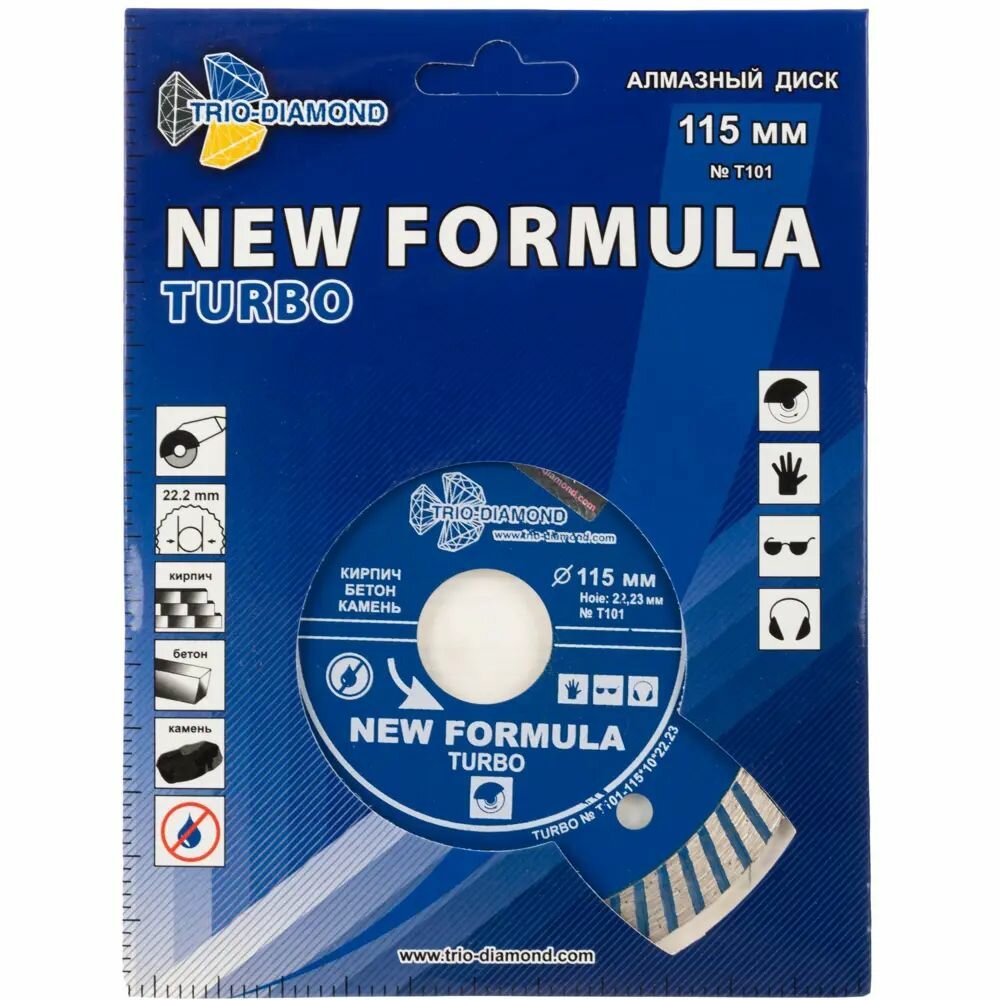 Диск алмазный отрезной Турбо New Formula (115х22.23 мм) TRIO-DIAMOND информация: