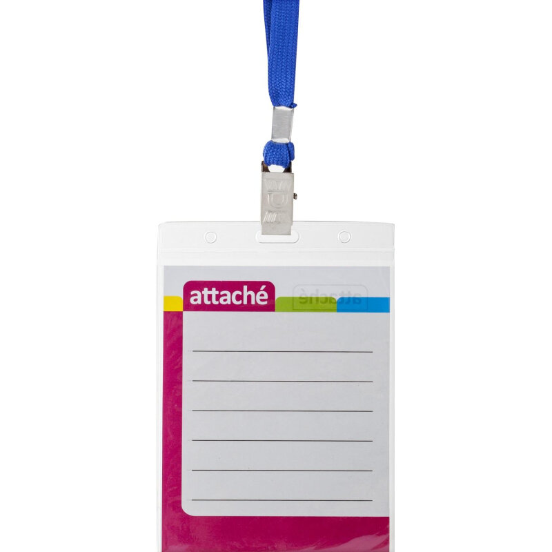 10 цен на Бейдж вертикальный Attache 120х87мм, 81х102мм, металл. зажим, тесьма синяя, 10шт. (1690947)