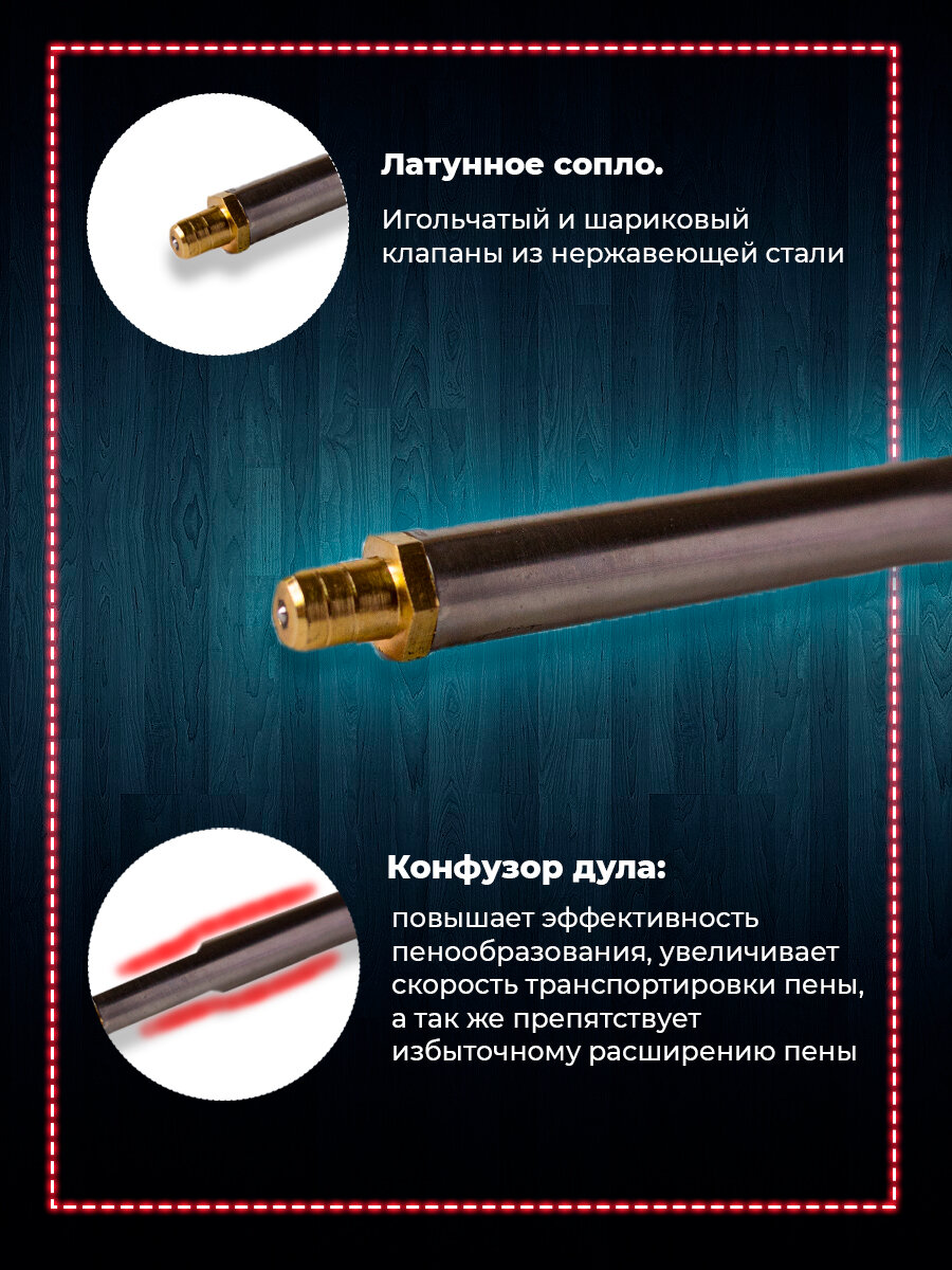 | Особенности | игольчатый клапан, камера пенообразования, удлиненный ствол |