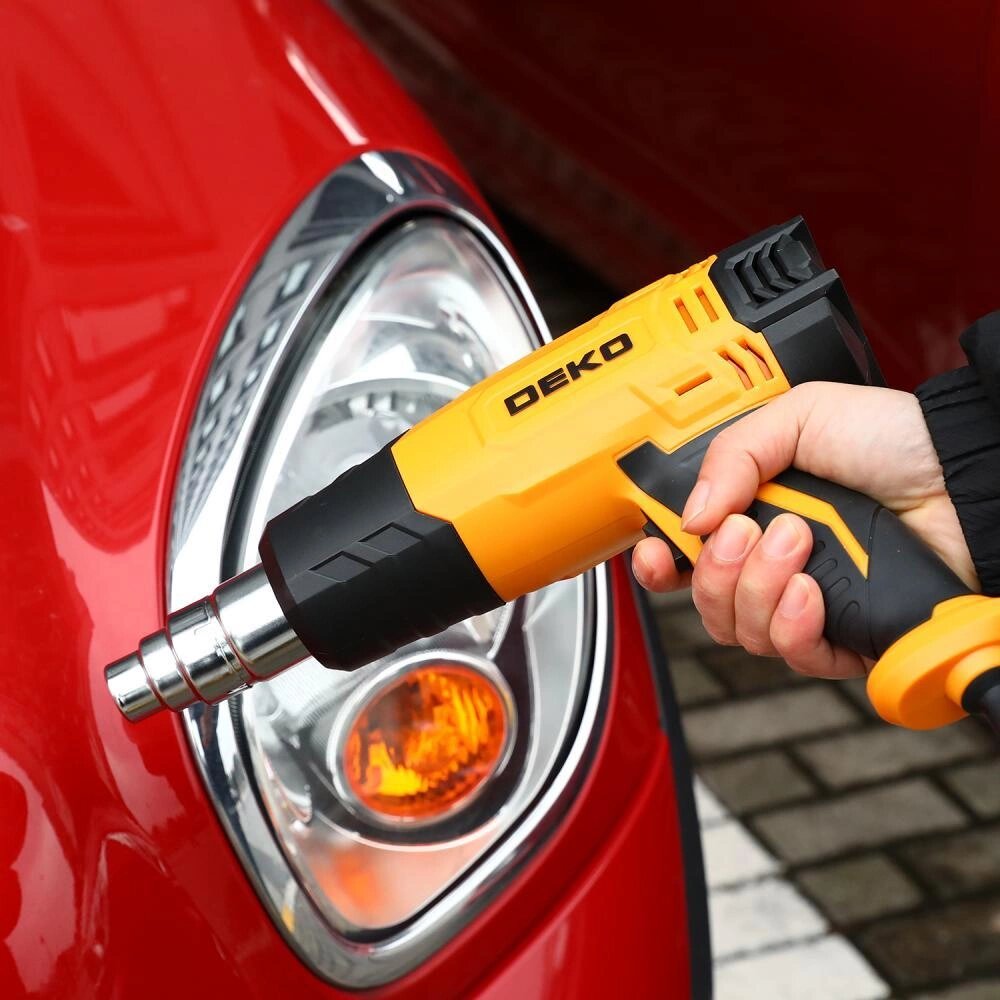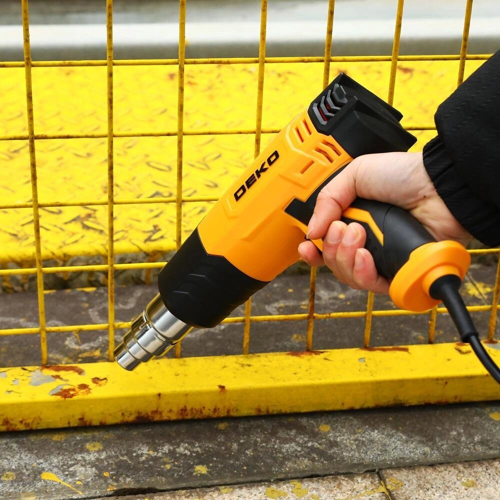 Строительный фен DEKO HG2300W, без аккумулятора, 2300 Вт черный/желтый