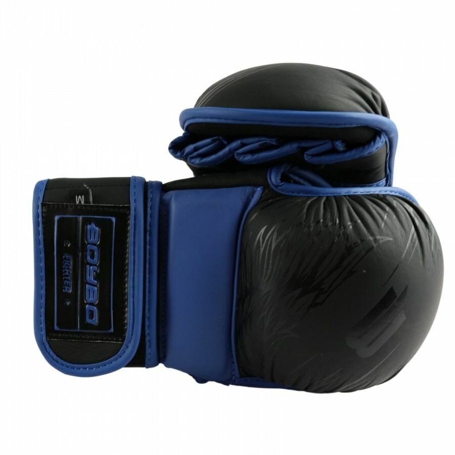 Перчатки ММА для смешанных единоборств, без пальцев, тренировочные тренировочные BoyBo Wings - Черный/Синий (L) 3 840 ₽