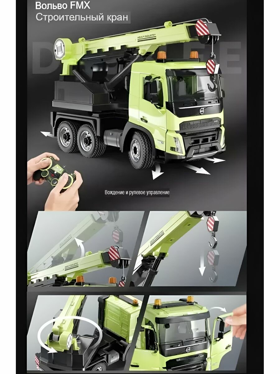 Радиоуправляемый многофункциональный автокран Double Eagle Volvo FMX масштаб 1:20, свет, звук информация: