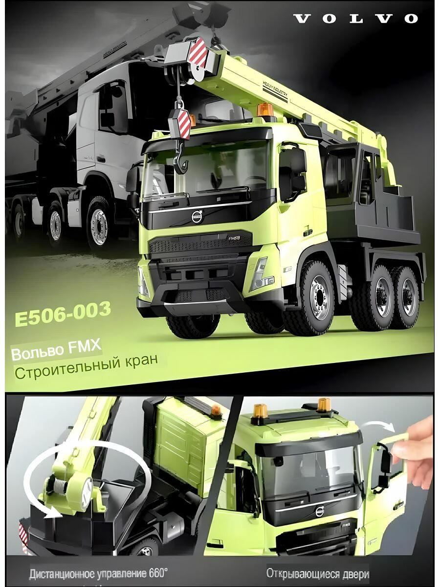 10 цен на Радиоуправляемый многофункциональный автокран Double Eagle Volvo FMX масштаб 1:20, свет, звук
