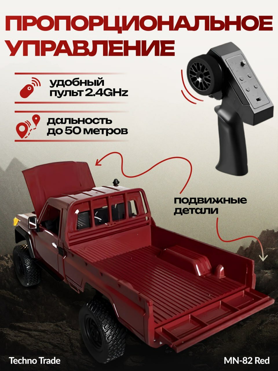 Радиоуправляемая машина MN MODEL, внедорожник Land Cruiser масштаб 1:12, 2,4 ГГц, RTR, 4WD - MN-82 Red информация:
