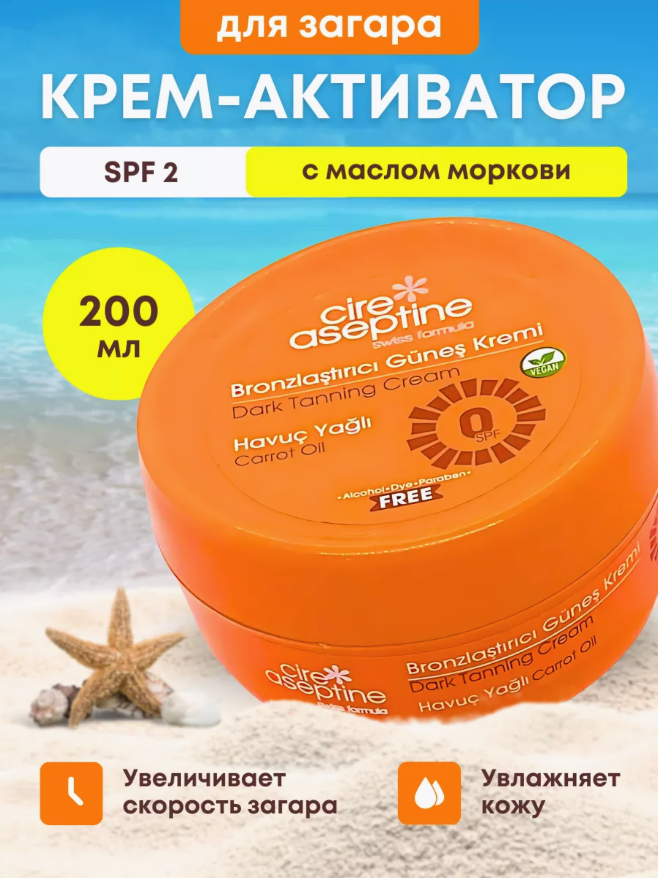 Крем для загара 0 SPF с морковным маслом, 200 мл, Dark Tanning Cream 0 SPF Carrot Oil информация: