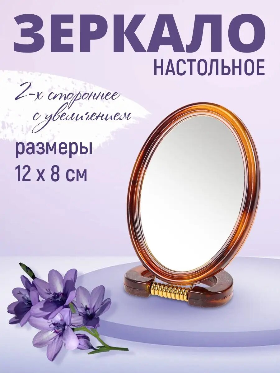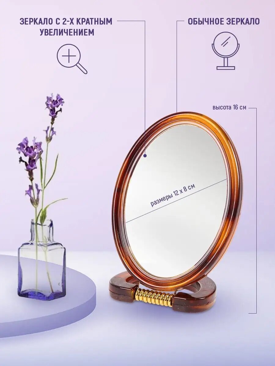Зеркало косметическое настольное овальное двустороннее разного увеличения информация: