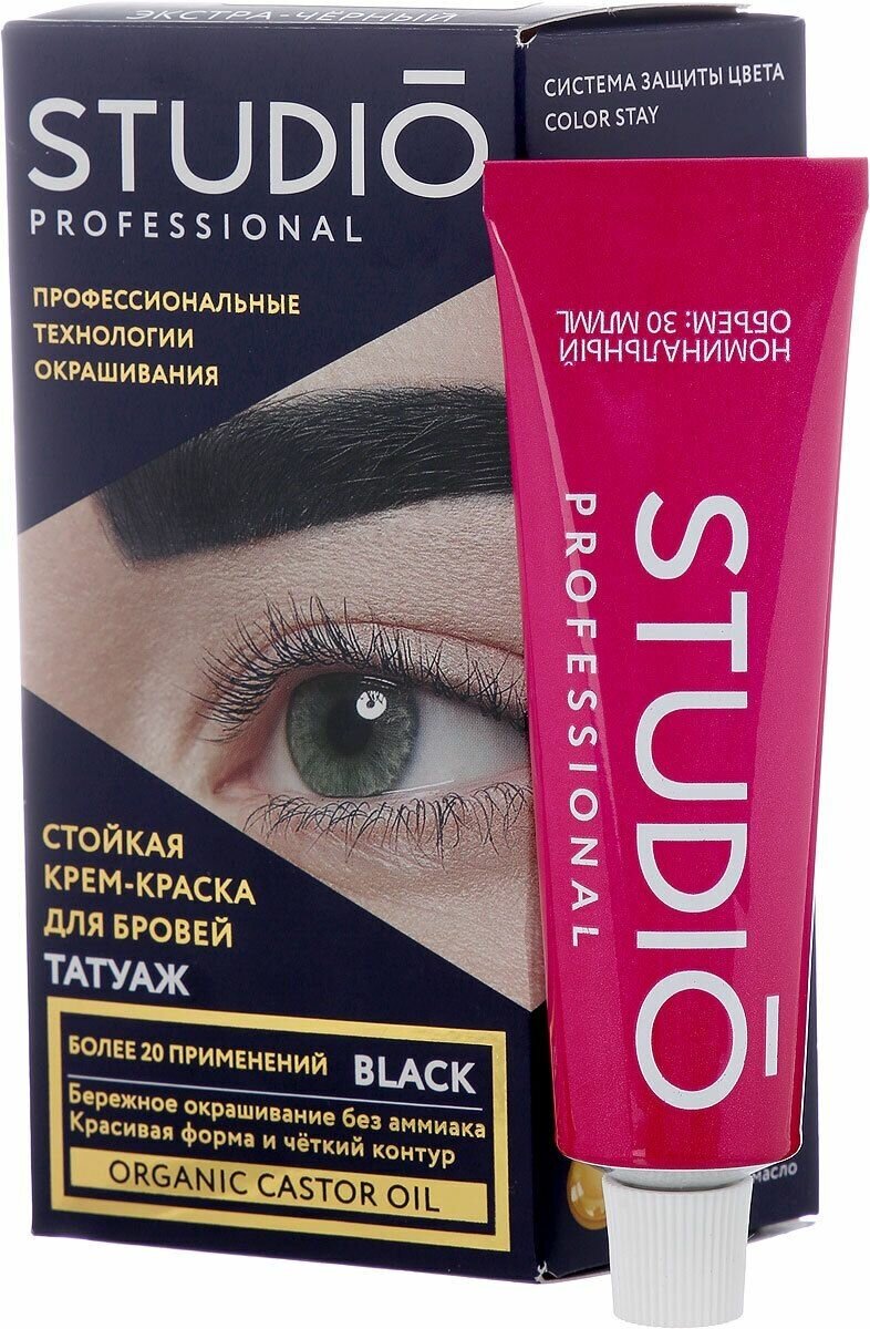 Studio Professional стойкая крем-краска для бровей, с эффектом татуажа экстра-черный