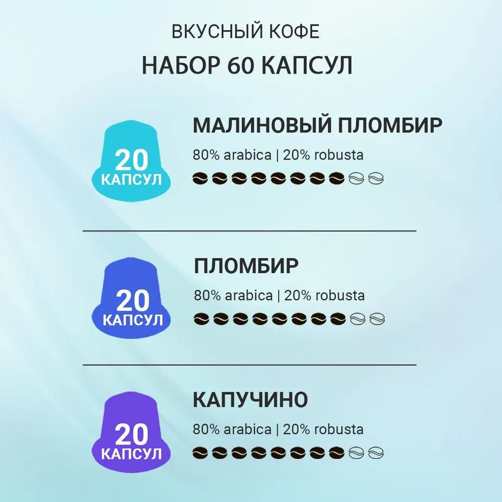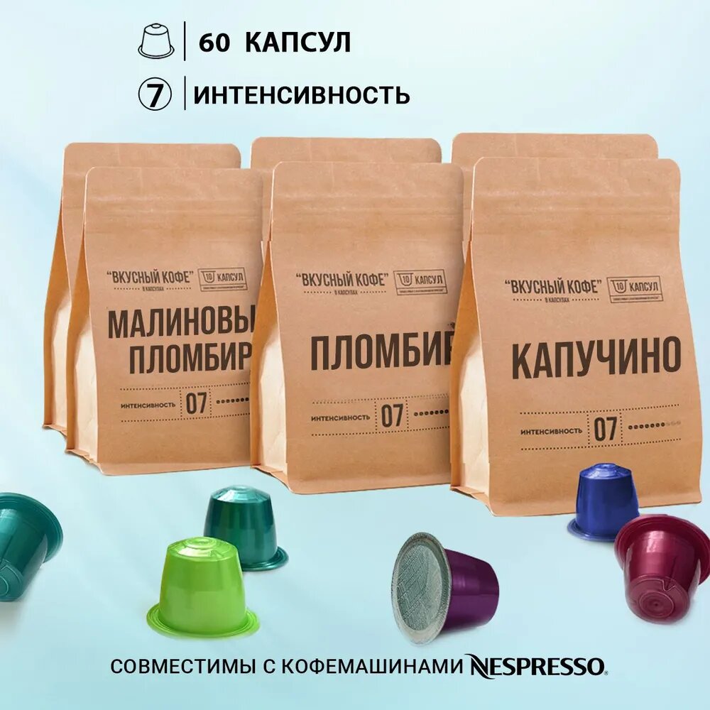 10 цен на Набор Вкусный кофе в капсулах - "Неповторимый" - 3 сорта по 20 шт. Капсулы для кофемашины Nespresso Неспрессо