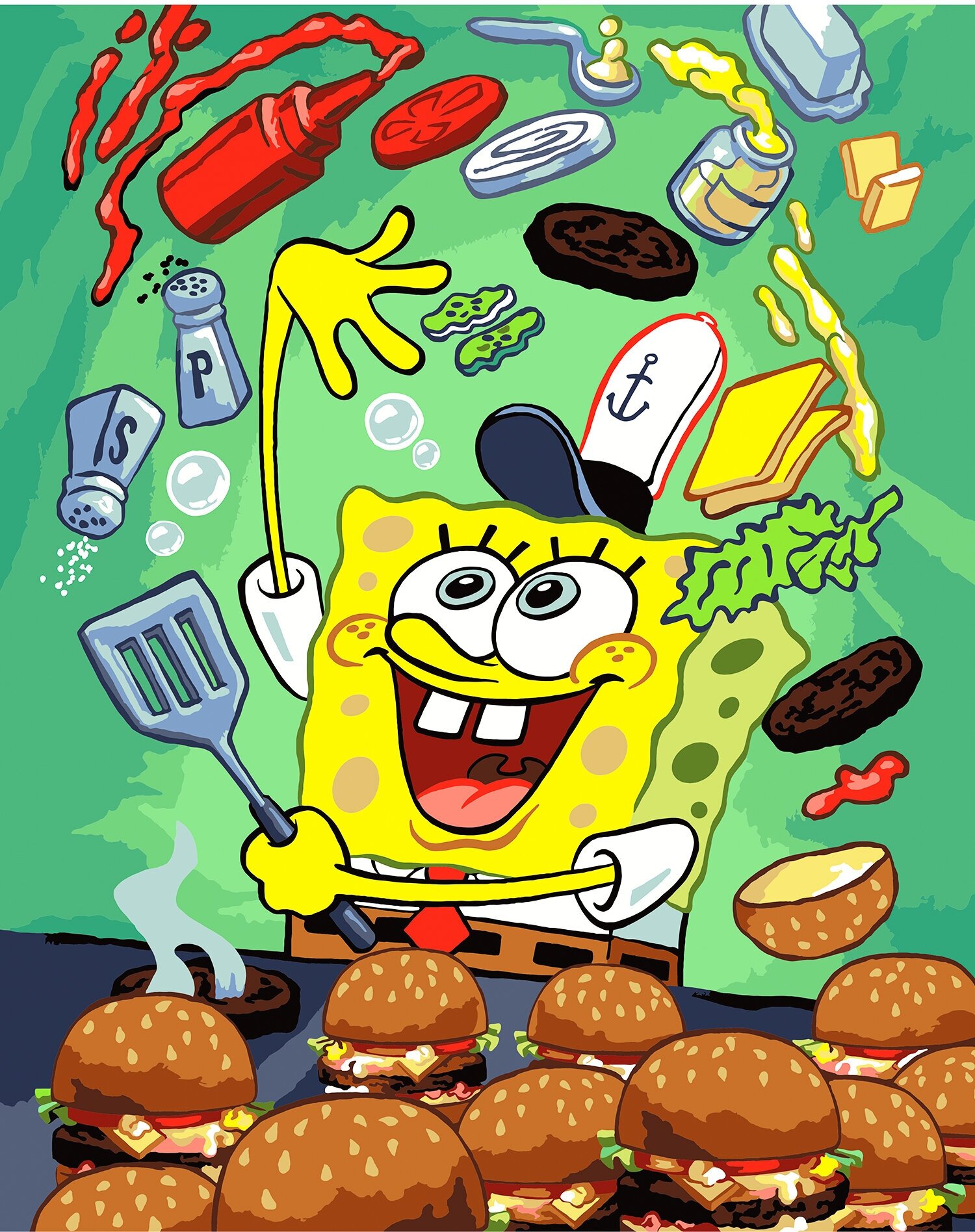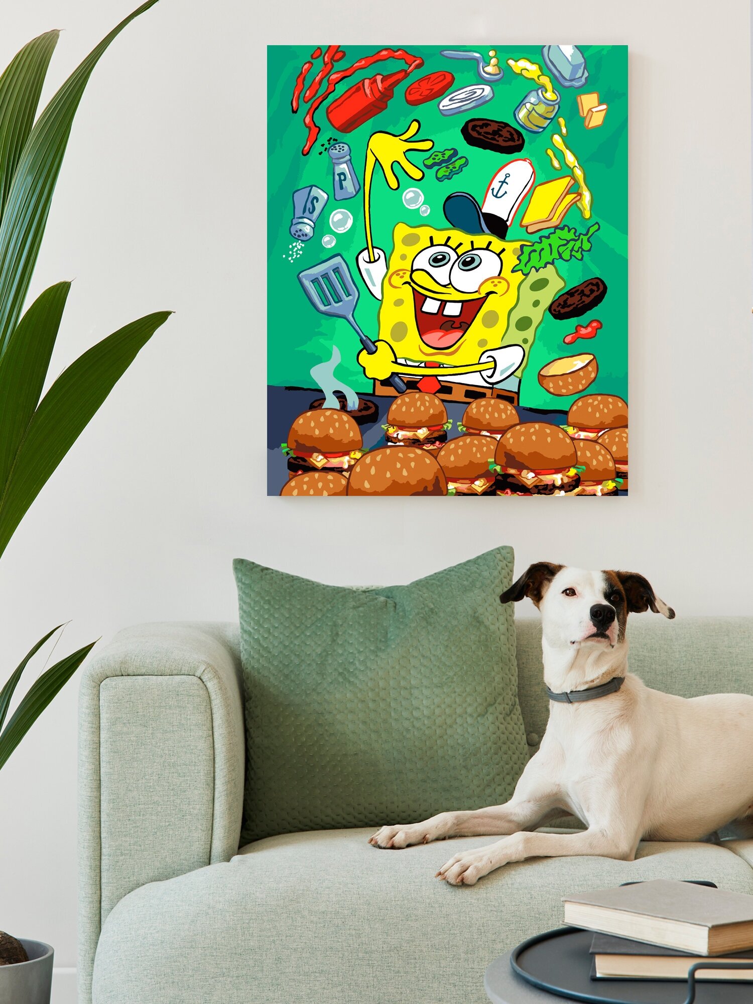 Отзывы на Картина по номерам на холсте 40х50 см "Губка Боб на кухне" на подрамнике