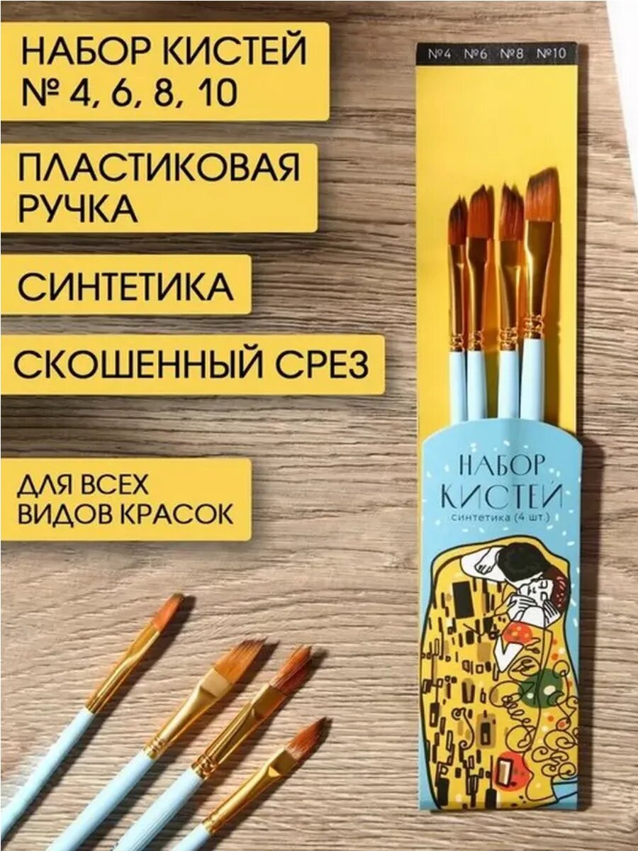 Кисть для рисования набор 4 шт синтетика плоские №4, №6, №8, №10 информация: