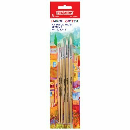 Кисти пифагор, набор 5 шт. (коза, круглые № 1, 2, 3, 4, 5), блистер, 200887