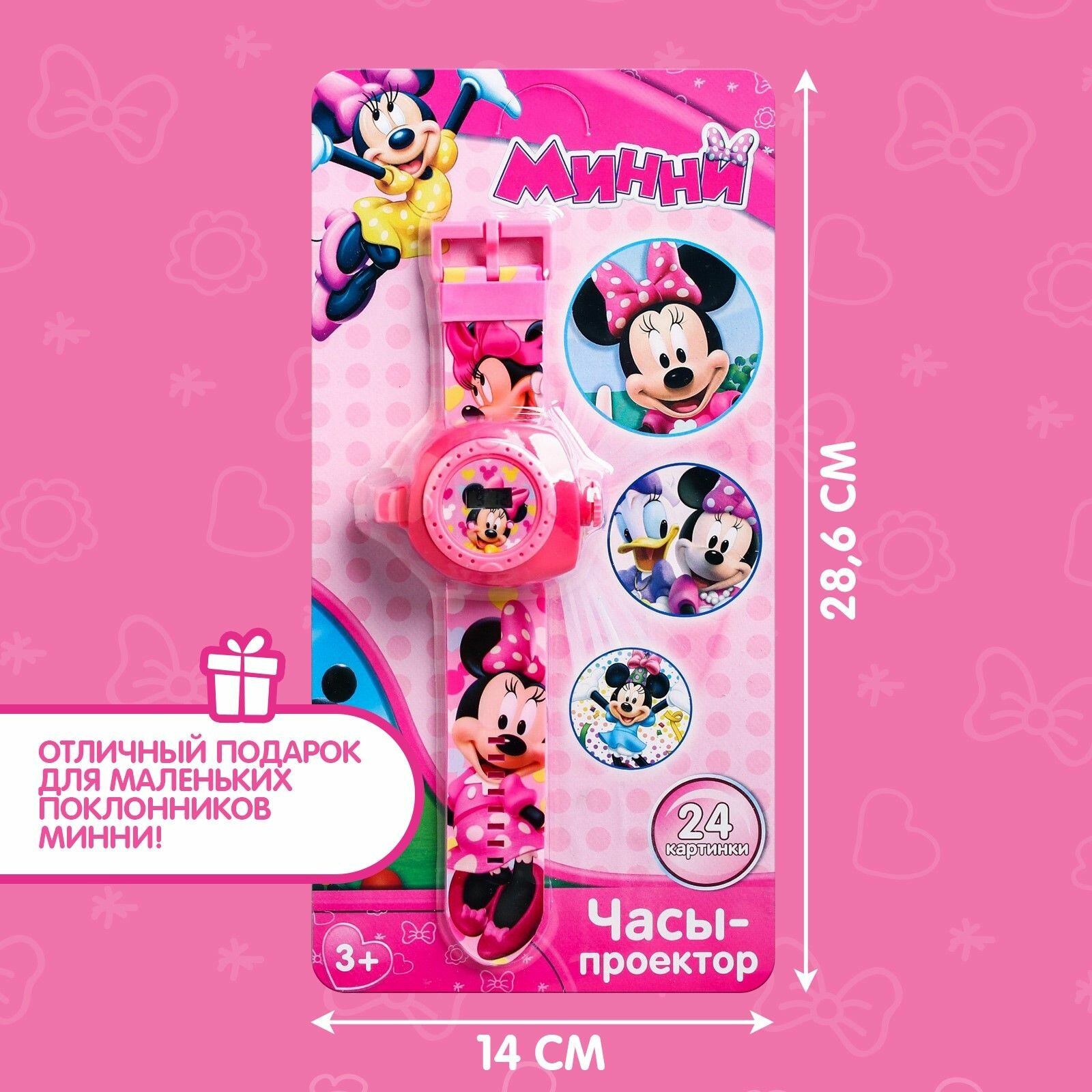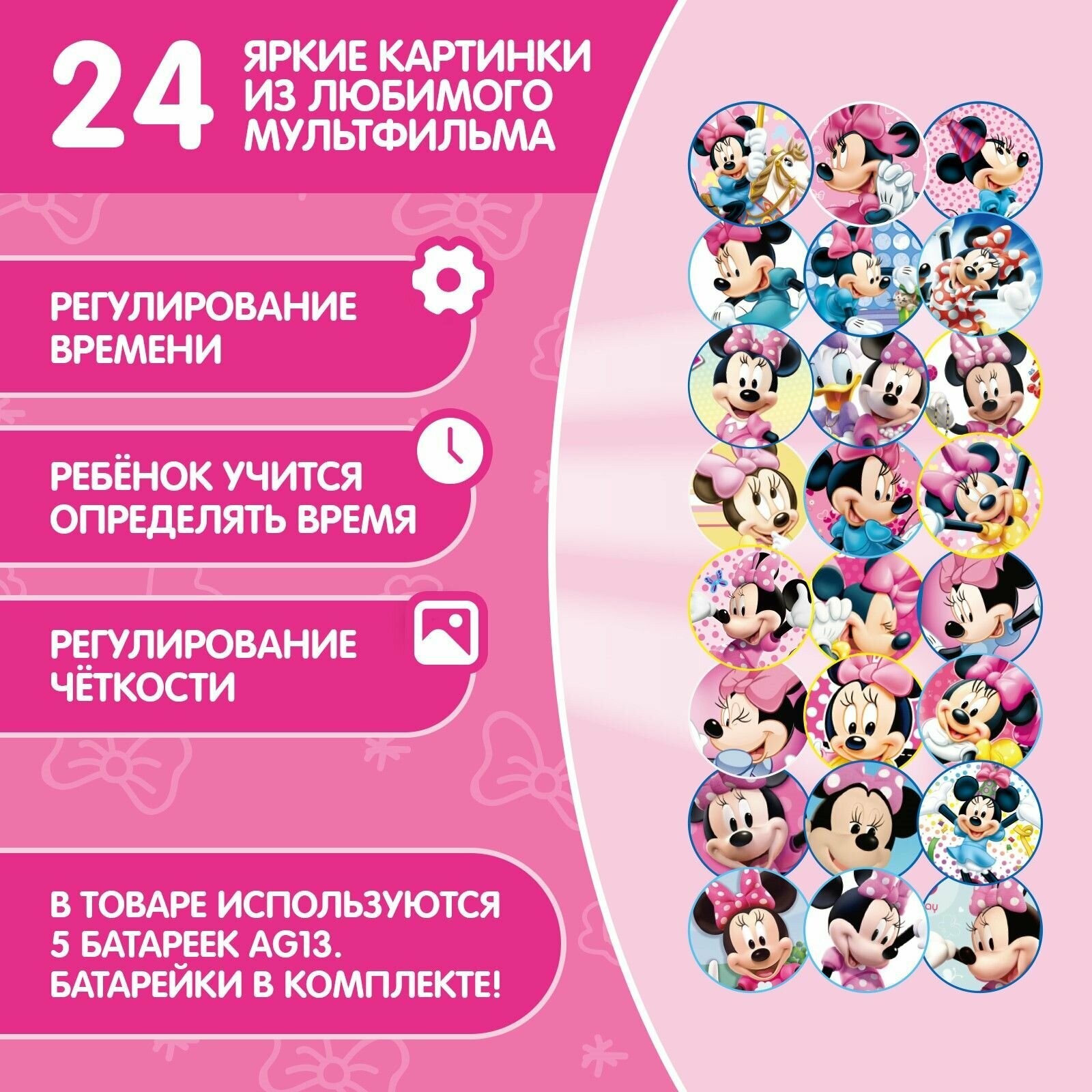Часы детские Disney Минни Маус, наручные, часы проектор, для девочек, от 3 лет, 24 картинки, розовые информация: