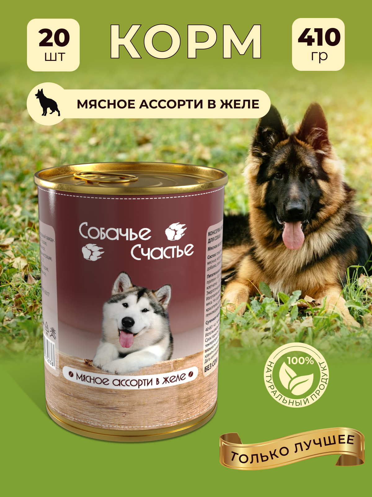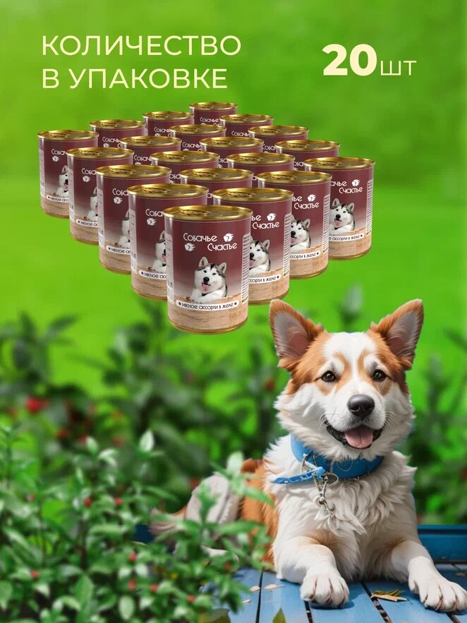 Корм для собак Собачье счастье Мясное ассорти в желе 410г х 20 шт. информация: