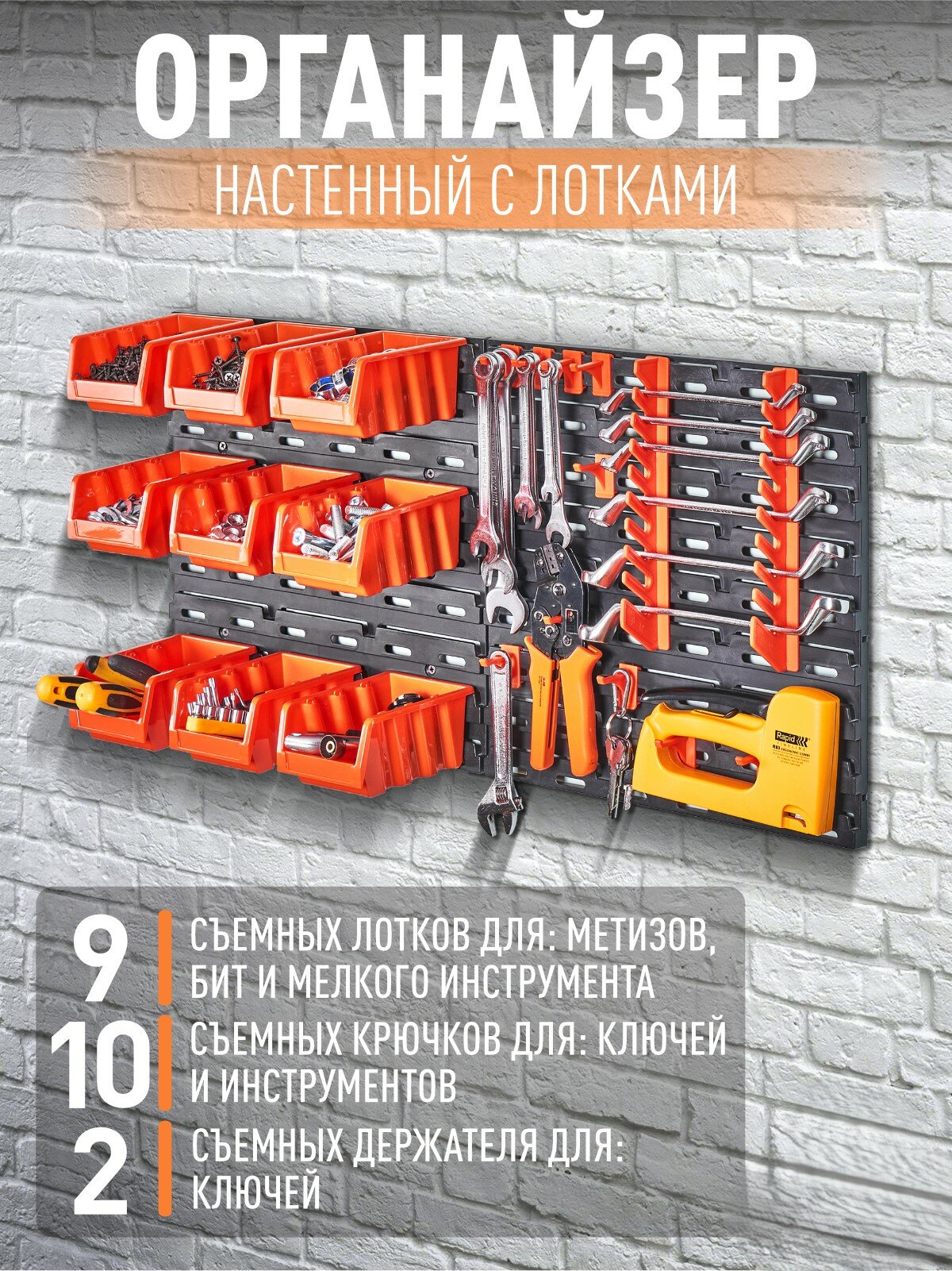 Органайзер для инструментов пластиковый, настенный с 9 лотками оранжевый-черный, 1 шт 1 899 ₽