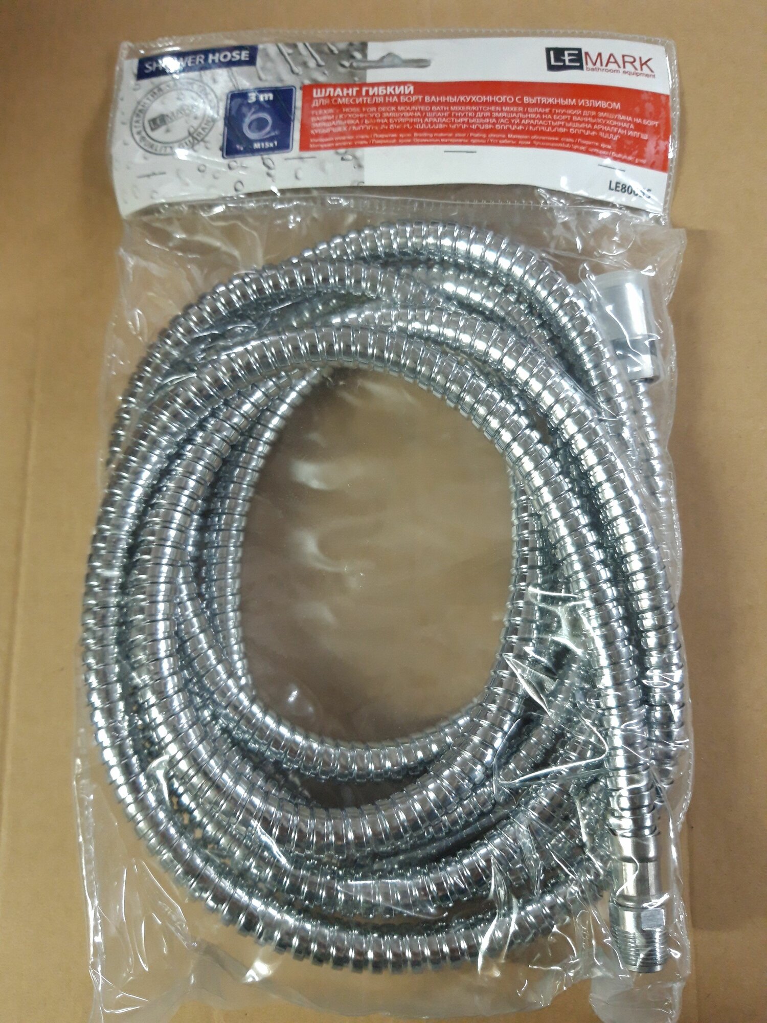 Шланг душевой Lemark LE8065S, 300 см стандартное подсоединение 1/2" (коническая гайка), с другой - штуцер свободного вращения М15х1. информация: