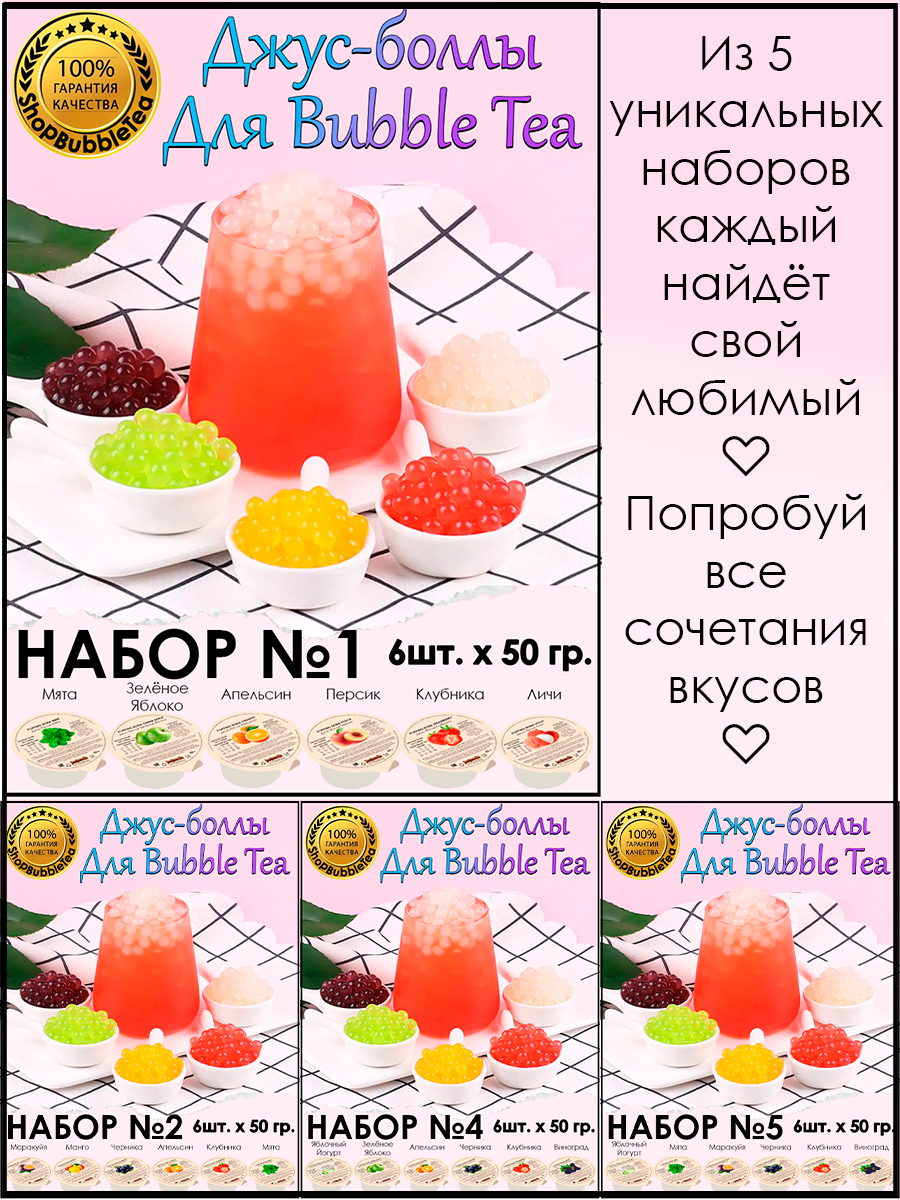 Набор №5, Джус-Боллы, Поппинг Боба, бабл ти, 50 гр. 6 шт шарики с соком для Bubble Tea 549 ₽