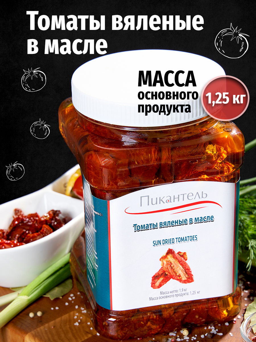 Вяленые томаты "Пикантель", в масле, в пластиковой банке, половинки, 1.9 кг информация: