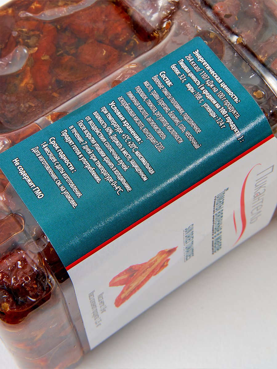 | Состав | вяленые томаты половинки, подсолнечное масло, травы (орегано, базилик), соль, чесночный порошок, глюкоза, лимонная кислота, аскорбиновая кислота |
