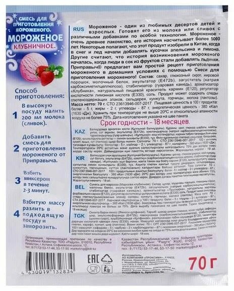 Смесь для мороженого Приправыч, клубничное, сублимированная, 70г, 20шт информация: