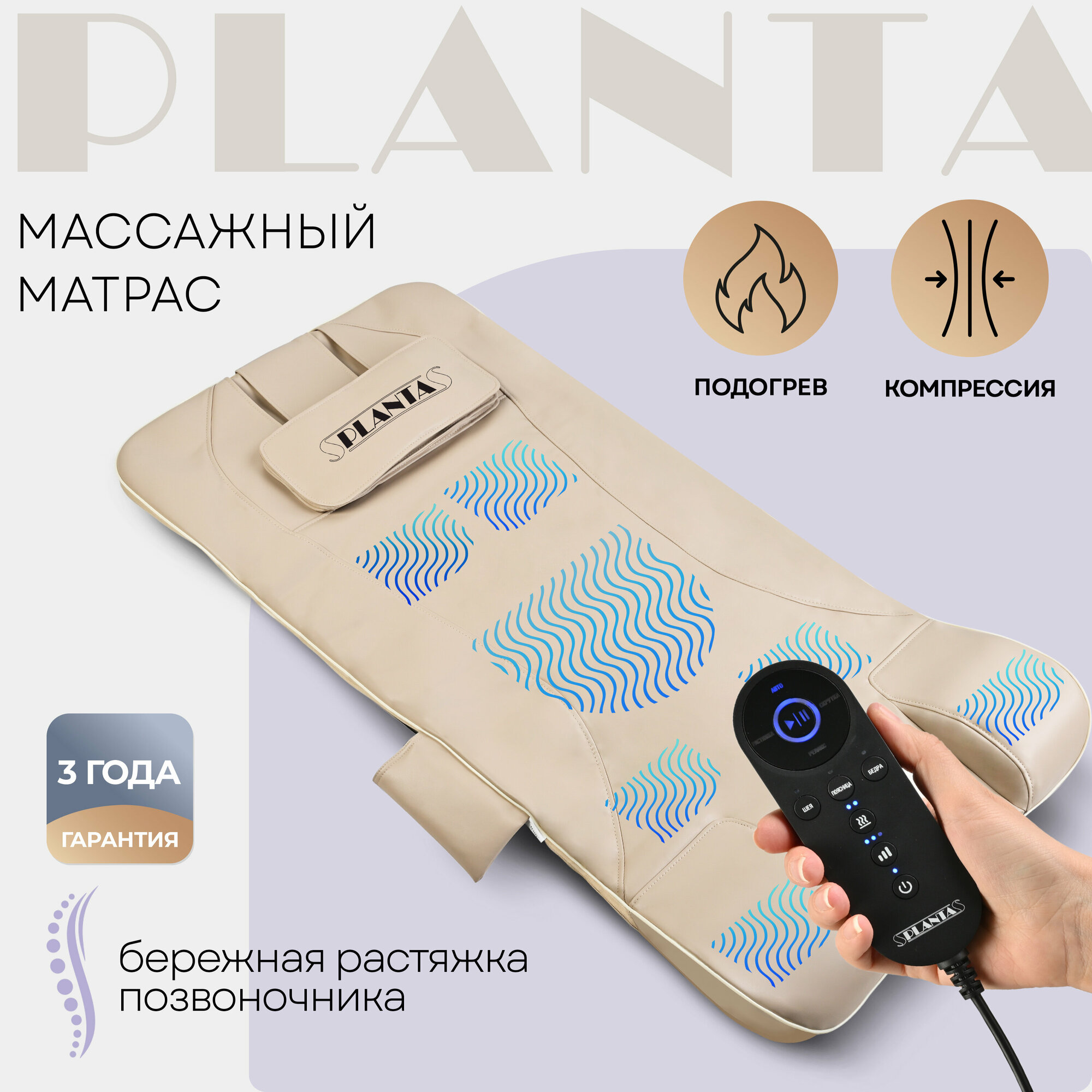 PLANTA Массажный матрас MM-7000, компрессионный массаж спины и шеи, бережная растяжка