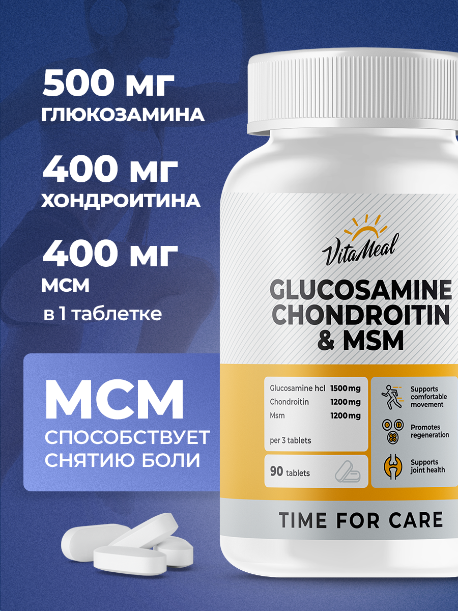Глюкозамин хондроитин МСМ для связок и суставов VitaMeal Glucosamine & Chondroitin & MSM, 90 таблеток информация: