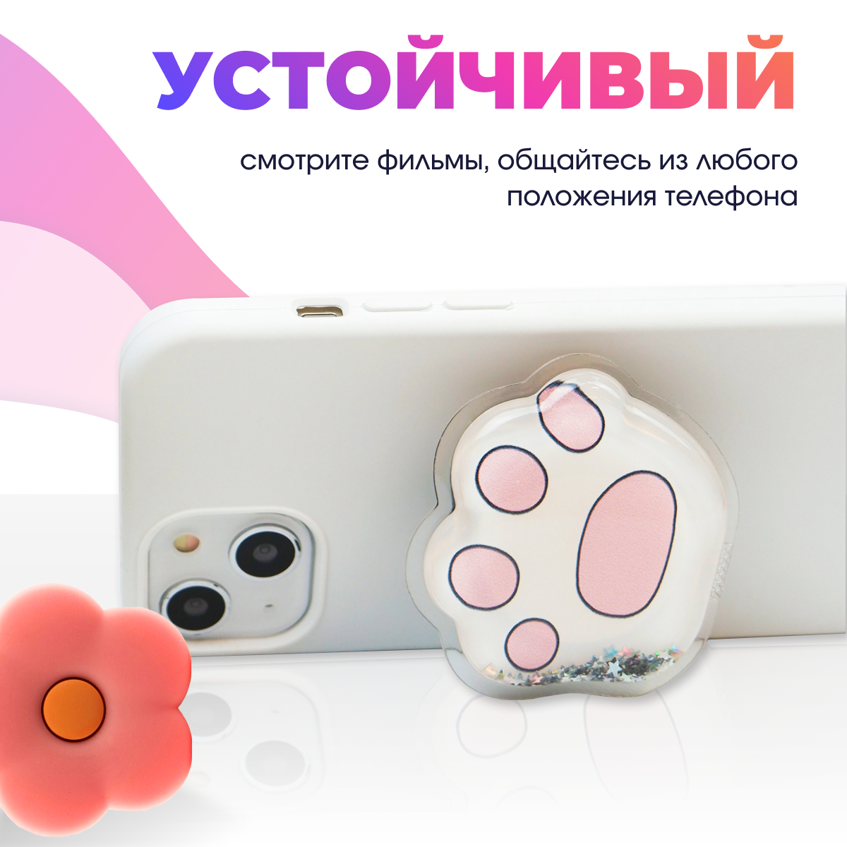 Держатель Popsocket (Белая лапка) для телефона / Попсокет для Apple IPhone и Android / Бело-розовый 435 ₽
