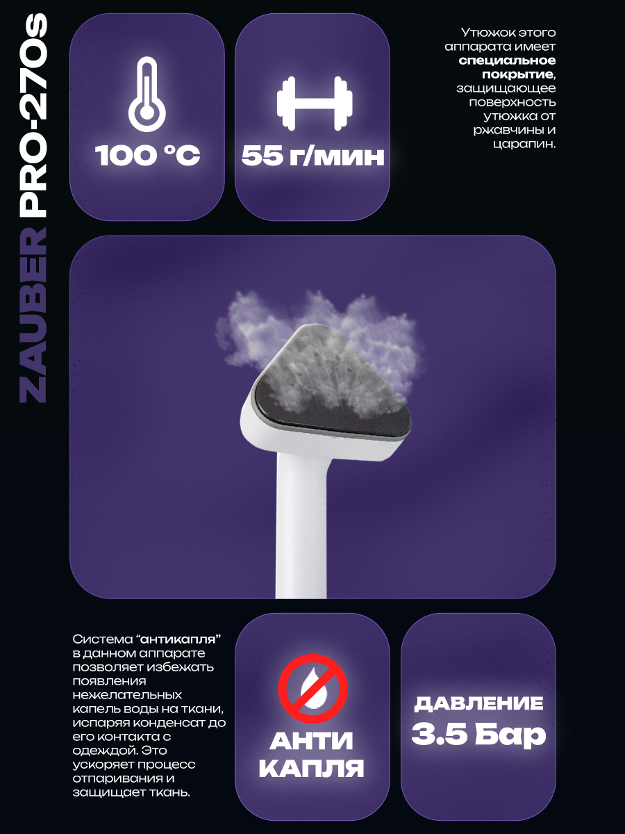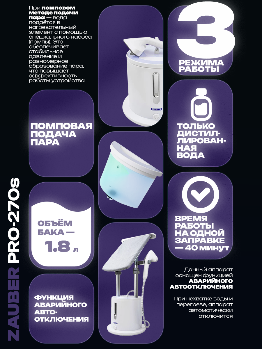 ZAUBER PRO-270s Starta, White мощный домашний отпариватель под давлением для одежды информация: